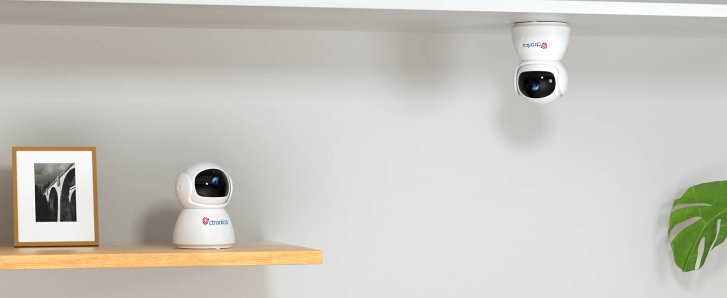 穴あけが必要なく設置することも簡単です。更に、室内の天井にも設置可能です。スマホで上下90°左右355°を調整できるし、画面を逆転にすることもできます。好みによって様々な場所に設置してください。
