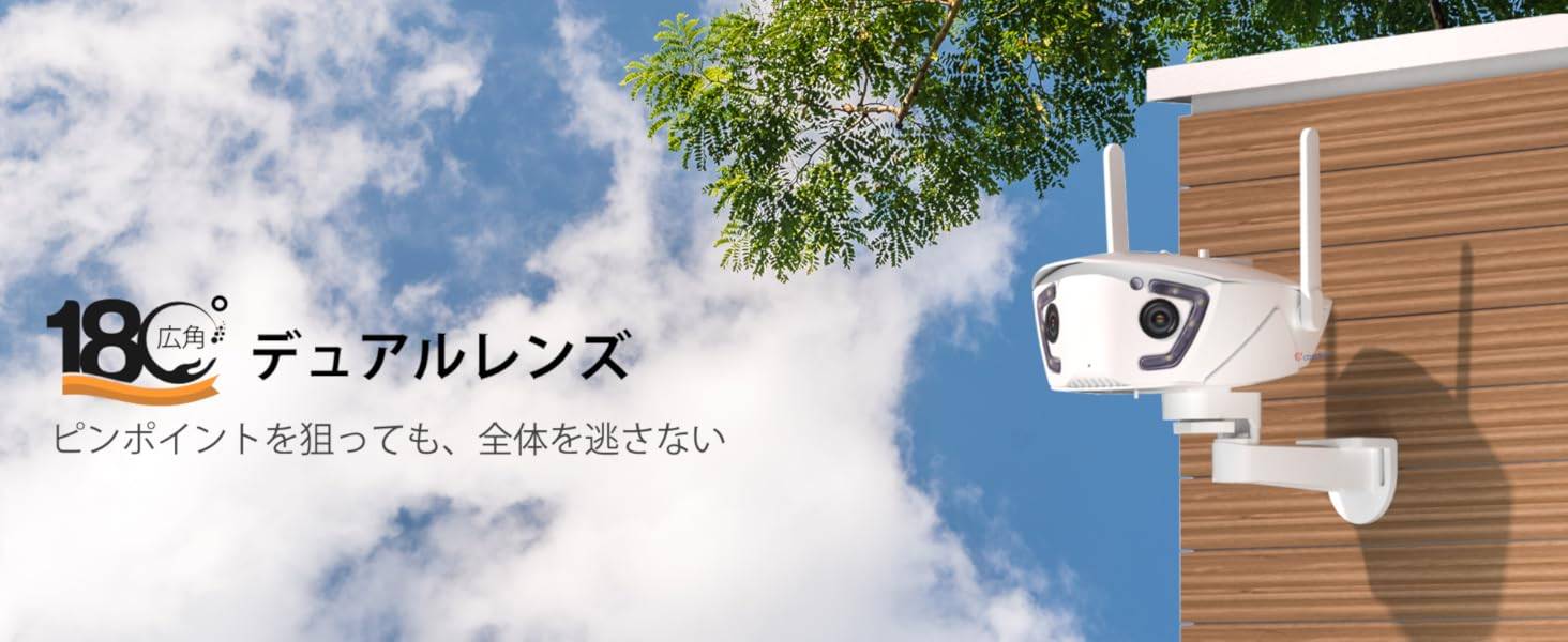 【180°超広角】 Ctronics 防犯カメラ 屋外 死角なし ダブルレンズAI検知 770c-w