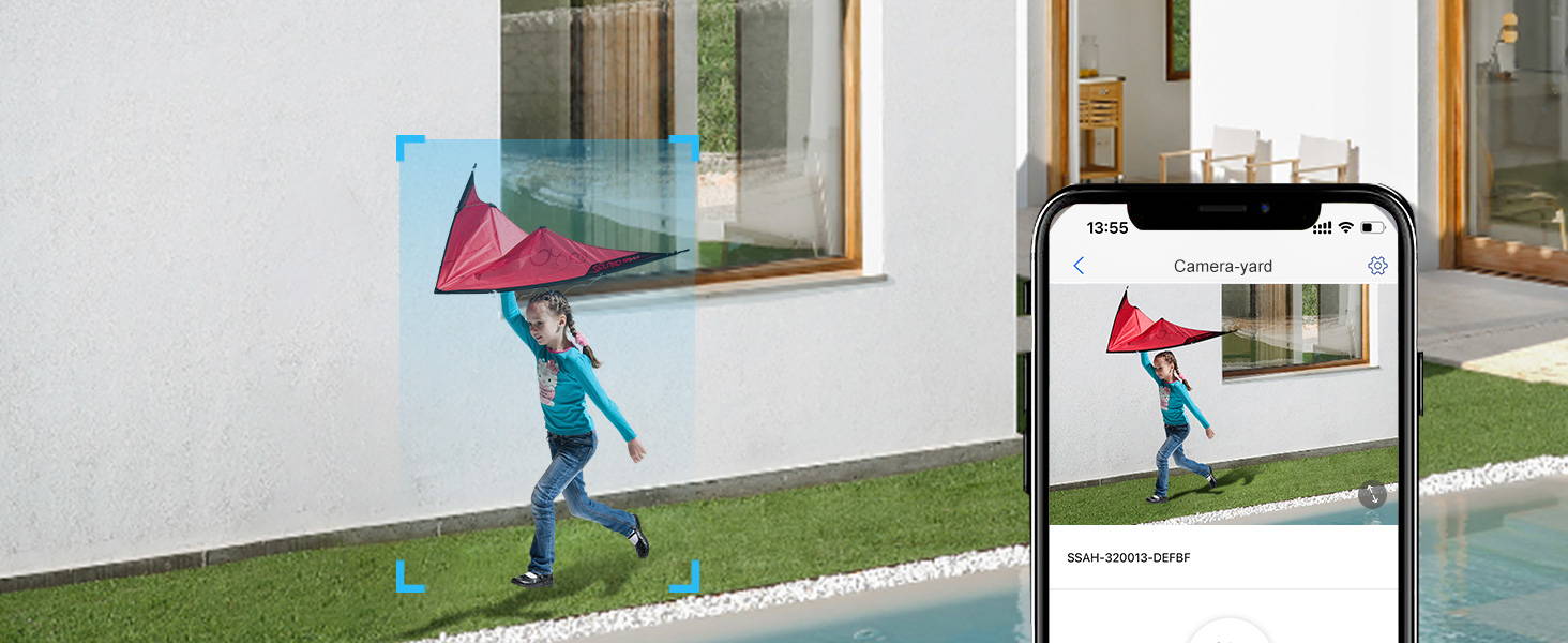 3つの暗視モードで、夜間の映像もはっきり見えます。赤外線での白黒映像も高画質でくっきり見え、カラーに切り替えると昼間の様なカラー映像になります。スマート暗視モードでは、ライトと効果音で不審者に警告を送ります。